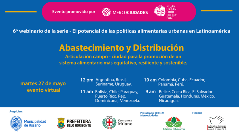 Mercociudades y el Pacto de Políticas Alimentarias Urbanas de Milán (MUFPP -por sus siglas en inglés-) convocan al sexto webinario de la serie de siete «El potencial de las políticas alimentarias urbanas en Latinoamérica», que se desarrollará el martes 27 de mayo a las 12:00 horas (GMT-3). Complete el formulario de inscripción en línea para ser parte.
