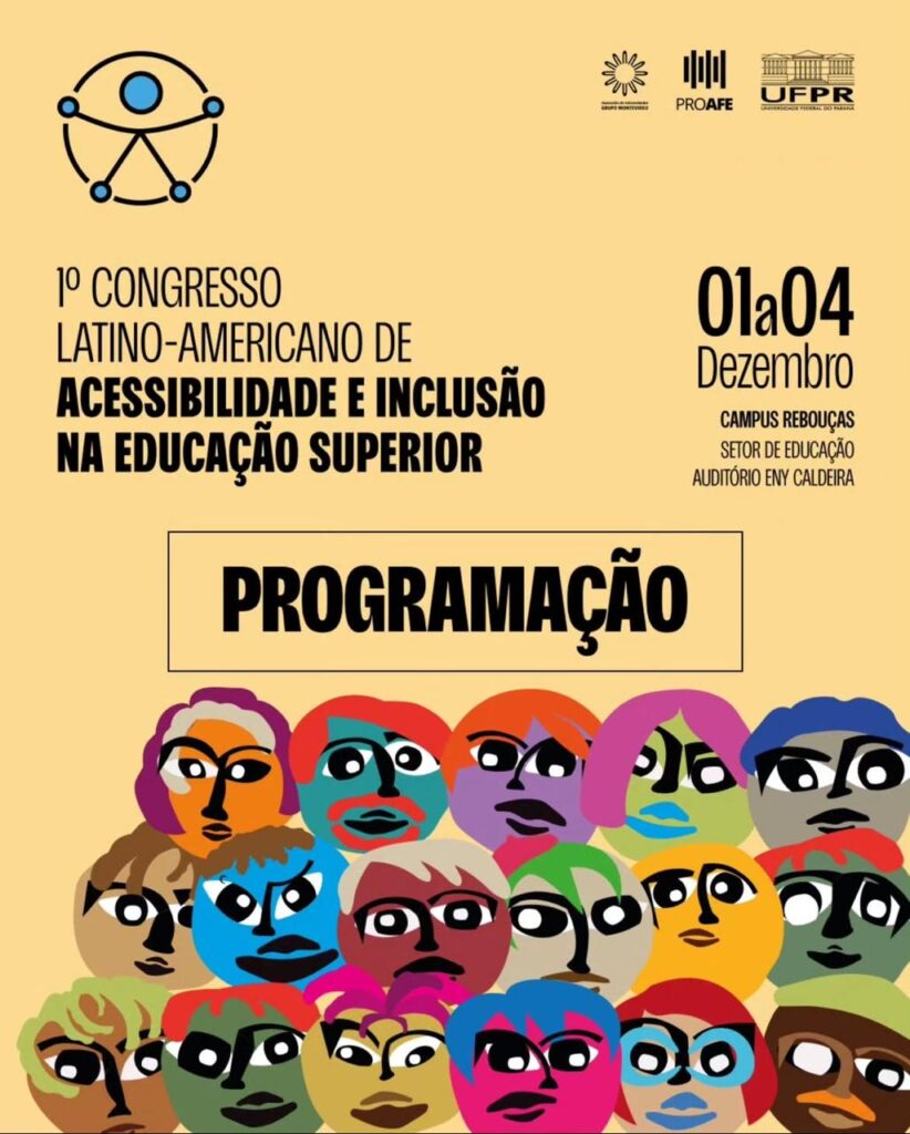 A Associação de Universidades Grupo Montevideo (AUGM), em seu compromisso com a construção do espaço acadêmico comum ampliado, tem a satisfação de anunciar a realização do 1.º Congresso Latino-americano de Acessibilidade e Inclusão no Ensino Superior, del 1 a 4 de dezembro de 2025 no campus Rebouças (Auditório Eny Caldeira) da Universidade Federal do Paraná (UFPR). Baixar a programacão do congresso.
