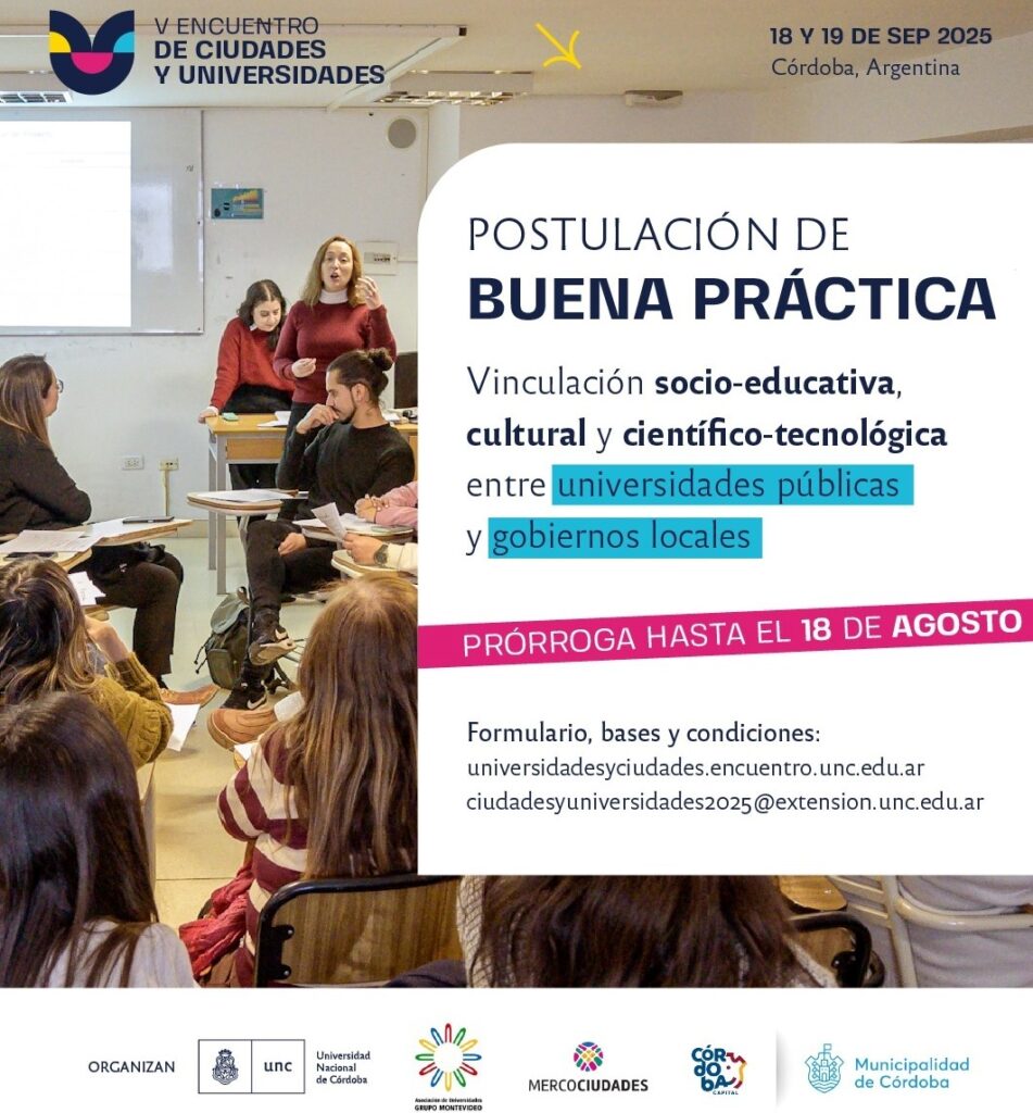 Hasta el 18 de agosto de 2025 se encuentra abierta la postulación de Buenas Prácticas de vinculación socio‑educativa, cultural y científico‑tecnológica entre universidades públicas y gobiernos locales. Pueden participar gobiernos locales y universidades de los países mencionados y no es necesario ser miembro de AUGM ni de la Red de Mercociudades.